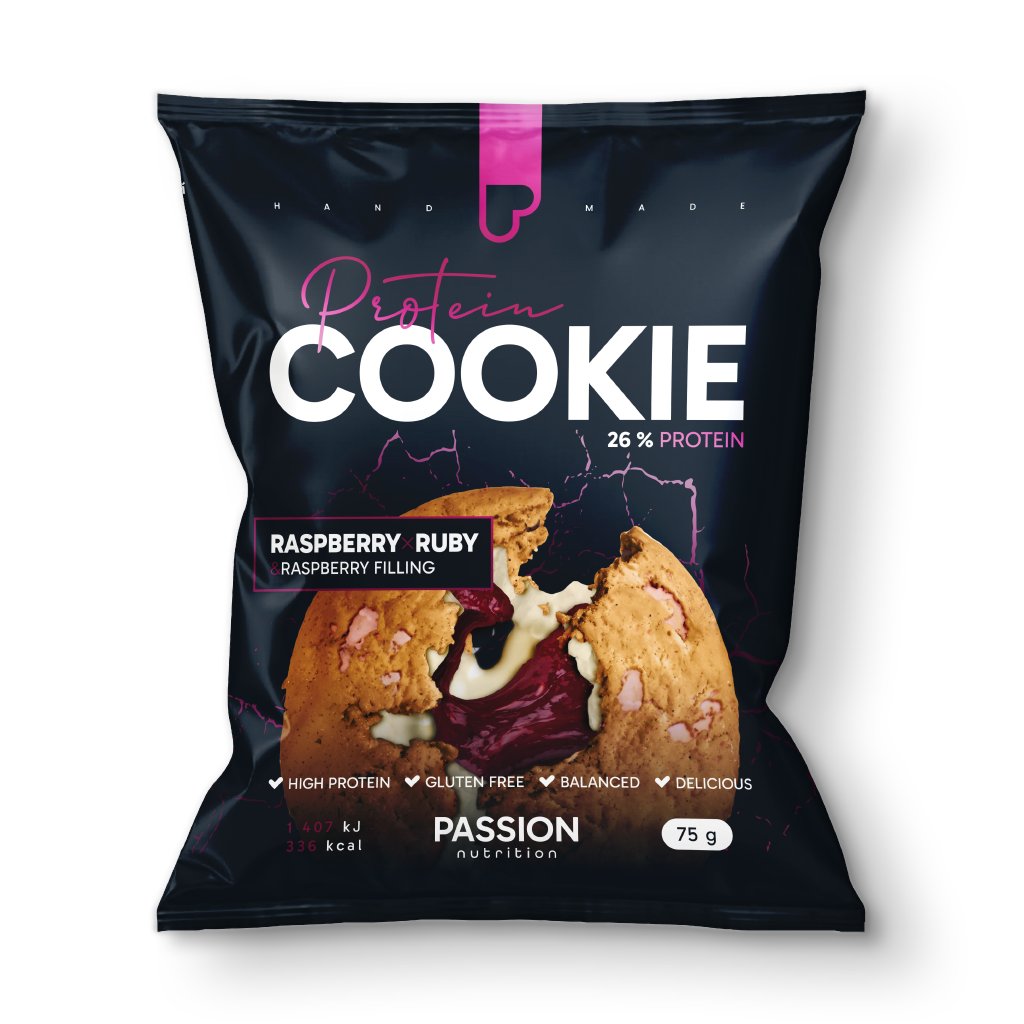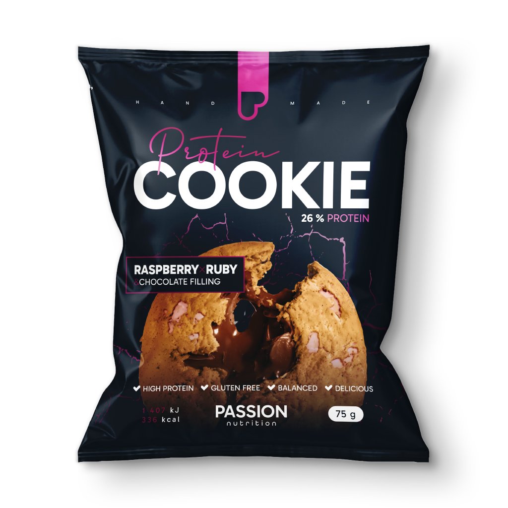 Passion proteinová plněná cookie 75g Malinová s ruby čokoládou